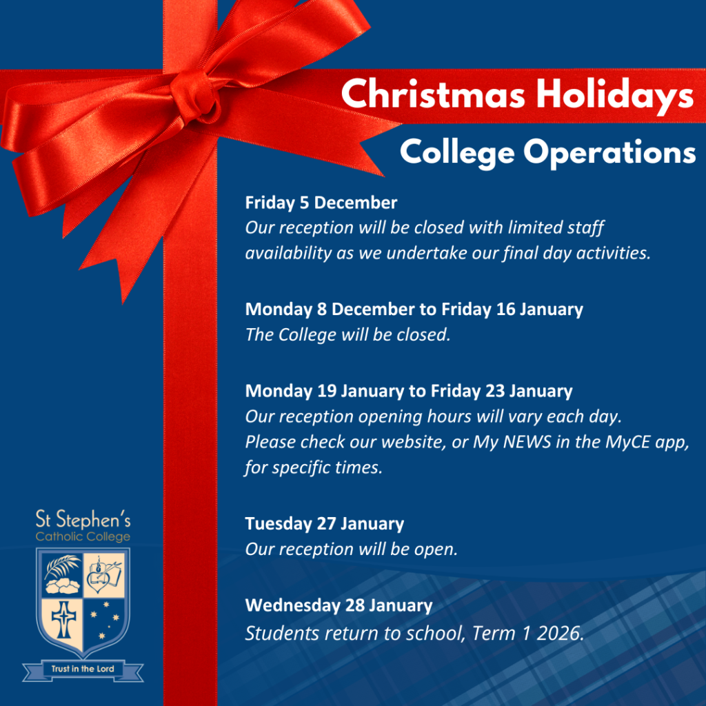 We look forward to welcoming all students back to school on Wednesday 28 January, 2026.
